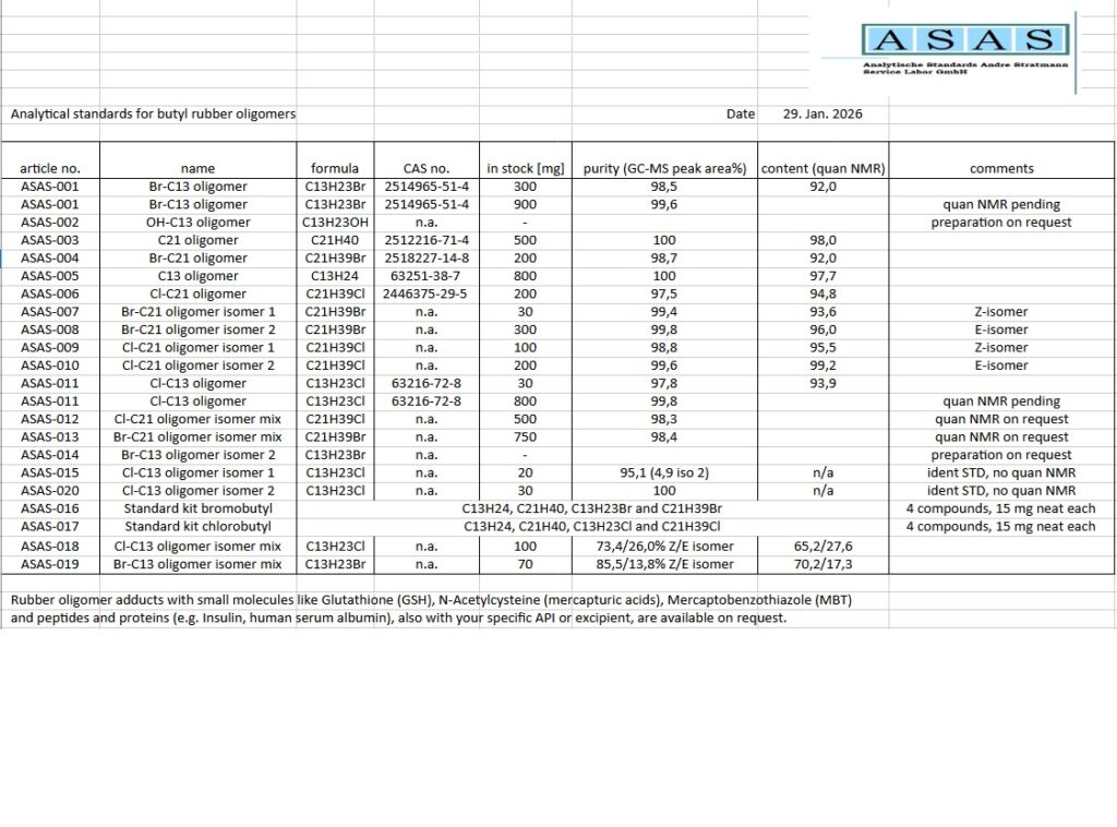 ASAS-017, Rubber oligomer analytical standard kit chlorobutyl